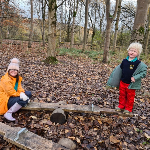 We are very lucky to be supported by our local community who have provided us with our very own Woodland Area for our outdoor work. The area is continuosly being being developed and is used on weekly basis come rain or shine!